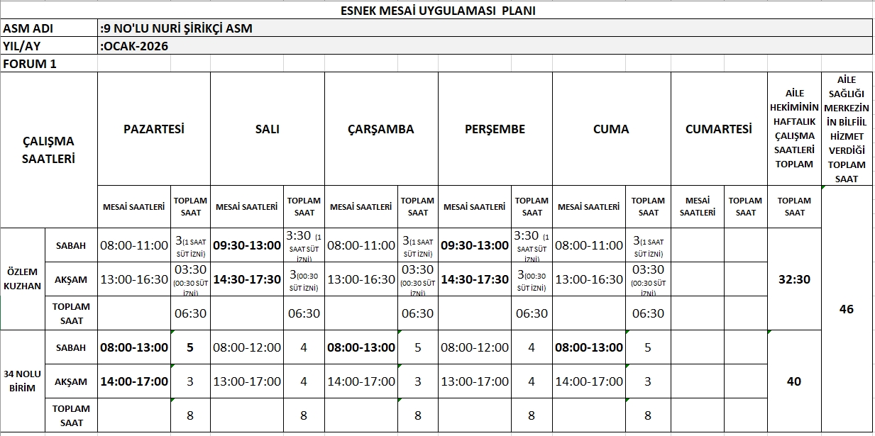 Çalışma Saatlerimiz